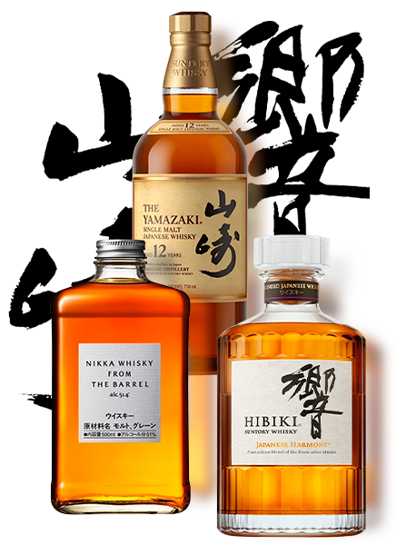 - Yamazakil2 anos: referência entre os single malts, com notas de frutas secas, gengibre e madeira doce.